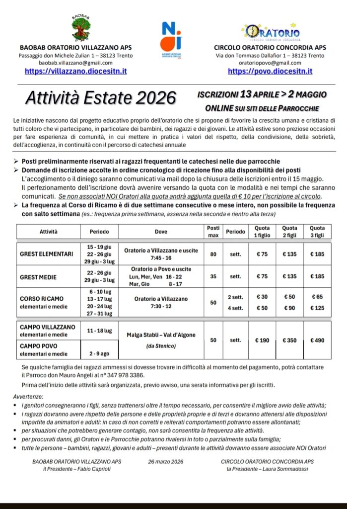 © 2026 Parrocchia di Parrocchia di Povo – Trento Diocesi di Trento